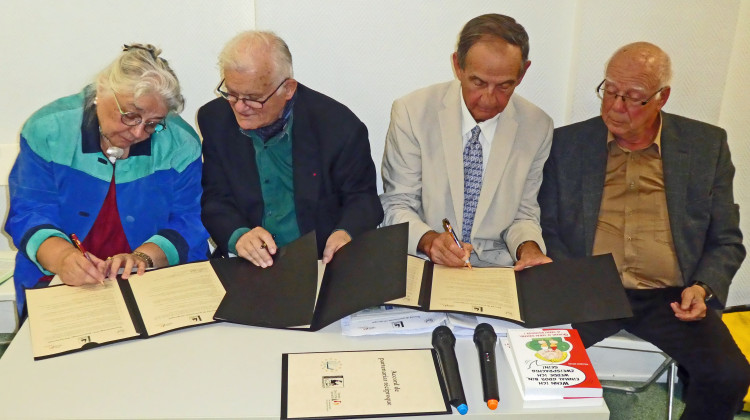 „Es ist ein historischer Moment", betonte Gérard Cardonne, Vorstand der SEAL und Träger des Badischen Heimatpreises (2001), bei der feierlichen Zeremonie. Gemeinsam mit Dr. Karin Jäckel vom AutorenNetzwerk Ortenau-Elsass® und Richard Weiss, Vorsitzender der René-Schickele-Gesellschaft und Mitglied des Vereins Deutscher Sprache, unterzeichnete er die bilinguale Urkunde.